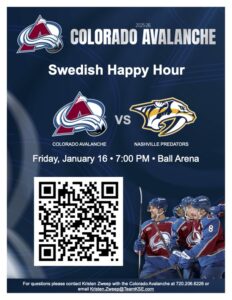 SACC-CO is excited to team up with SWEA Colorado and Swedish School Colorado for a fun night at Ball Arena as the Colorado Avalanche take on the Nashville Predators.